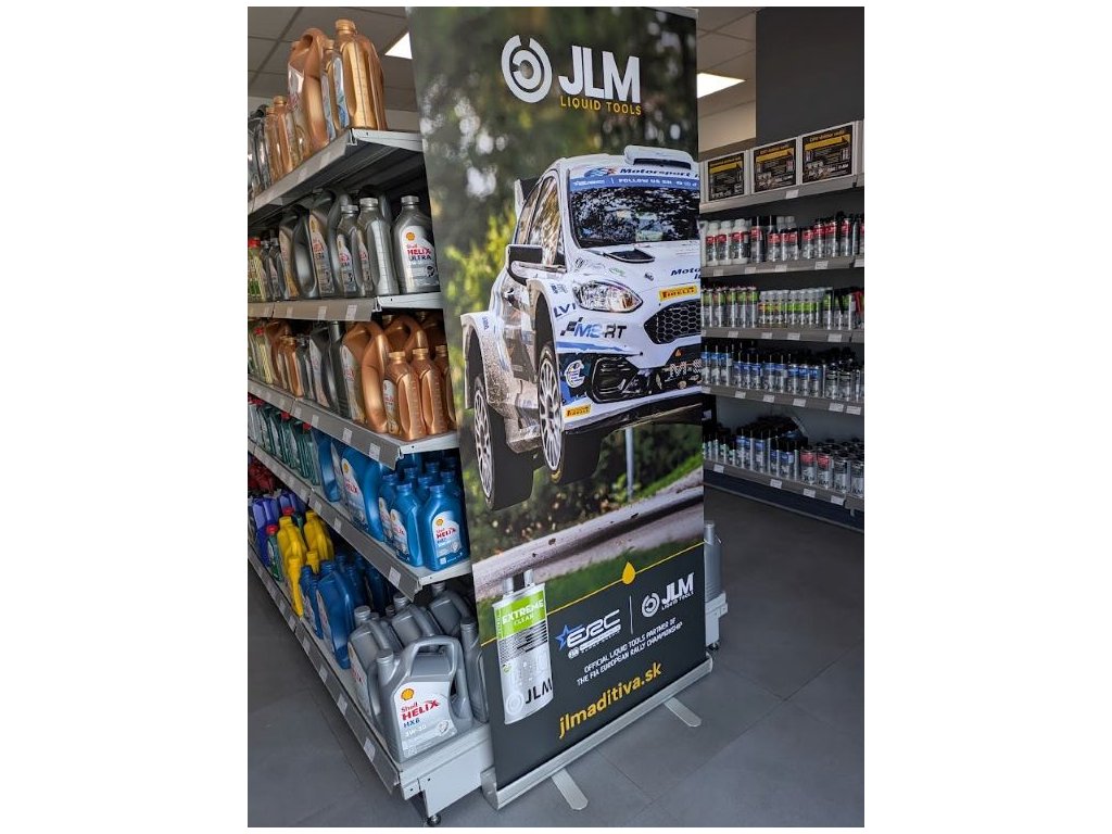 Designový roll-up banner v rally stylu. Dodá vaší prodejně nebo servisu moderní vzhled a styl evropského rally.